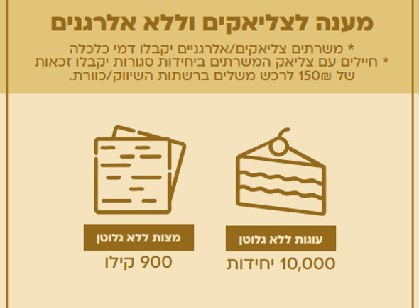 מארז "מנות ליל הסדר ללוחם" הייעודיים לקיום ליל הסדר בשטח, אשר כוללים את כלל המצרכים לקיום ליל הסדר כהלכתו בתנאי שטח שונים.