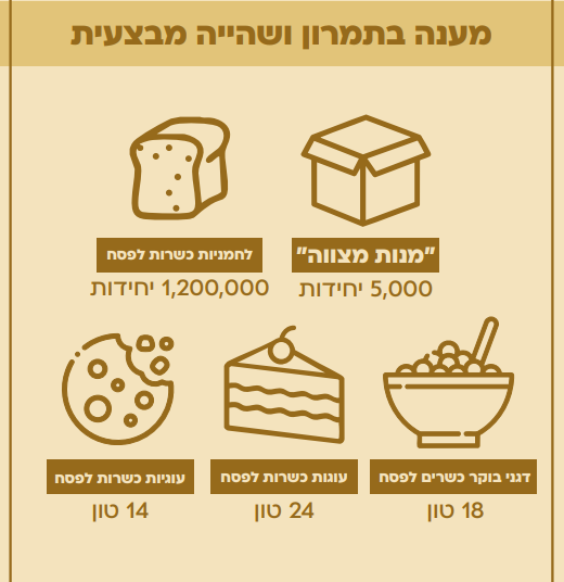 חולקו יותר מ-106 טון מצות, עשרות אלפי הגדות ואלפי מארזי מזון מיוחדים ללוחמים