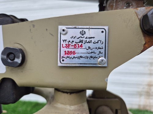 תרגום מפרסית: "הרפובליקה האיסלאמית של איראן, משגר 'סקוויב' M.M.73, מספר ושנת ייצור"