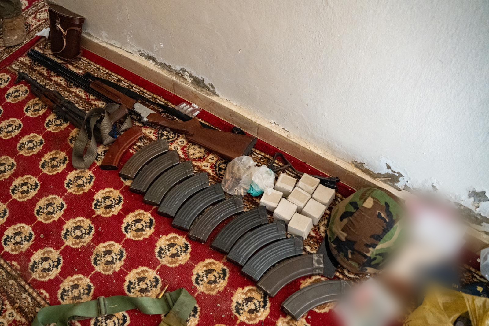 בנוסף איתרו ציוד צבאי ומאות אמצעי לחימה, ביניהם: נשקים מסוג 'קלאצ'ניקוב', נשק ארטילרי, מטענים, אקדחים, רקטות 'RPG’ ותחמושת.