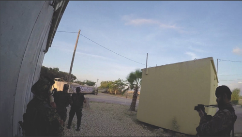צילום מתוך מצלמת ראש שפורסם על ידי רשת אל־ג'זירה תחת הכותרת "אל־ קסאם תקף את מפקדת רעים, מקום מפקדת אוגדת עזה הישראלית5."