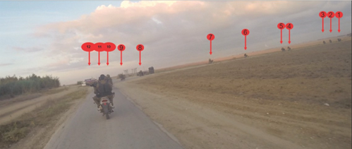 תנועה על גבי כבישים ניתנת לזיהוי בקלות באמצעות שילוט הדרכים בדרך. השילוט נראה באופן יחסית רציף, ולעיתים ניתן לזיהוי באמצעות צפייה רגילה בסרטון. כך לדוגמה, נראה בבירור מסלול הנסיעה של חוליה שנעה על גבי חמישה אופנועים שפשטה על מחנה אורים. הצילום מתחיל בשטח שנמצא מערבית לקיבוץ מגן; האופנועים נעים בשטח הכפרי בדרכי עפר ואחר כך עולים על כביש. הם חולפים מדרום על פני קיבוץ מגן ומגיעים לצומת על כביש .232 בצומת זה ניתן לראות את השילוט31, כך ניתן לשחזר את מקומם ולפענח את נתיב הנסיעה עד לצומת ואחריו.