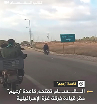 קאעדה רעים מקר פרקה ג'זה אלאדראיליה' (עדות: "אל־קסאם תקף את מפקדת רעים מקום הימצאה של מפקדת אוגדת עזה הישראלית.)"
