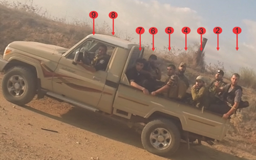 אחד האתגרים בקביעת כמות כלי הרכב הוא הדמיון הרב בין הטנדרים, ובייחוד אלו שהוסר מהם מספר הרישוי של הרכב. לדוגמה, בפשיטה על 'הנובה' היה מספר לא מבוטל של טנדרים לבנים, שחלק ניכר מהם היה ללא מספר רישוי. נוסף לכך היו באזור 'הנובה' שני טנדרים חומים – גם הם זהים בצבעם ובצורתם. לפיכך נדרש לתת בכלי הרכב סימנים שיאפשרו להבחין ביניהם. ההבדלים הללו מזעריים וכמעט ולא ניתנים לאיתור במהלך הצפייה בסרטונים, אולם ניתן לראות לעיתים בצידו של אחד מהם מדבקה או צבע שונה של חישוק הגלגל.