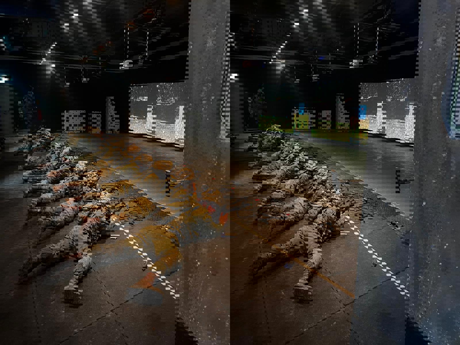 מדובר בסימולטור המתקדם של הנחלוואים, שנחנך לפני כ-5 שנים, ואין כמעט מי שלא מכיר אותו בחטיבה. כשנכנסנו פנימה, הוקרן על מסך ארוך מסלול מטווחים, שנראה מציאותי לגמרי. על הרצפה, שכבו שורת חיילים. כל אחד מהם ניצב מול מטרה, מתרגל ירי מדויק בנשק, לפי הפק"ל שלו: נגב, מאג וכו'.