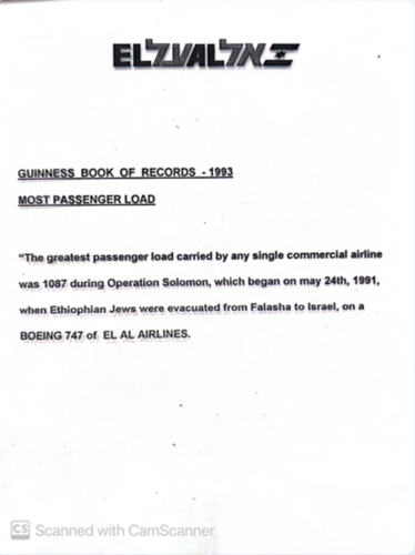 מפקד המבצע, ליפקין-שחק ז"ל, פנה לטייס הג'מבו, סא"ל (מיל') אריה עוז, בבקשה שיקח את כל הנוסעים שירדו אל המטוס שלו. הוא הצליח לפנות מקום לכולם, וכשנחת בארץ גילה שמספר העולים על המטוס היה גדול משחשב - 1,087 אנשים, מספר שזיכה אותו אפילו בשיא גינס.