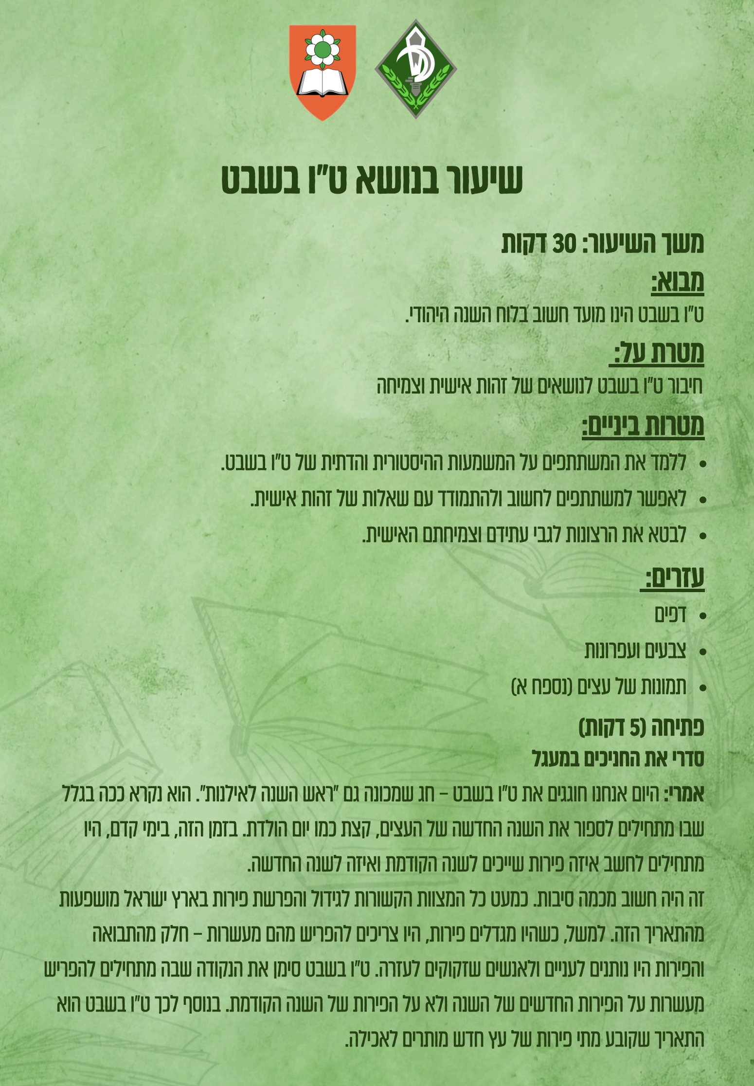 מערך שיעור ט״ו בשבט