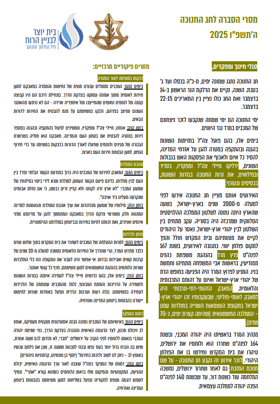 מסרי הסברה לחג החנוכה - ה'תשפ"ו 2025