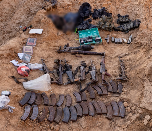 במהלך הפעילות, הכוחות איתרו פיר ובו עשרות אמצעי לחימה ששימשו את ארגוני הטרור ברצועה, ביניהם נשקים מסוג קלאצ'ניקוב, מטולי נ"ט (RPG) ומחסניות.