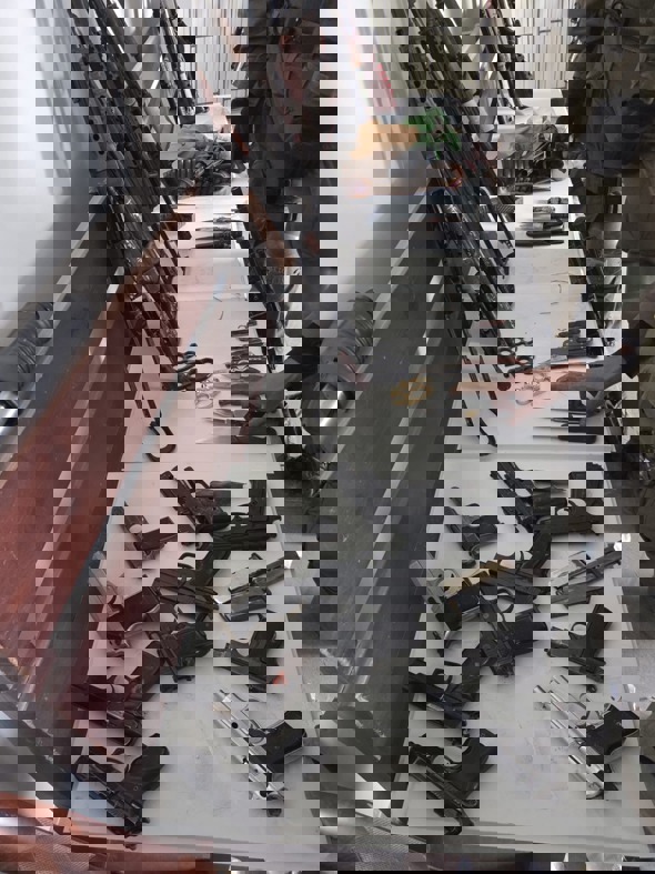 13:14 | כוחות חטיבת גבעתי בפיקוד אוגדה 98 ממשיכים בפעילות הקרקעית הממוקדת להשמדת תשתיות טרור. במסגרת פעילות במרחב בינת ג'בייל, הכוחות איתרו בבית ספר במרחב יותר מ-130 אמל"ח. בין הנשקים שאותרו: קלאצ'ניקובים, אקדחים וכלי נשק נוספים.
