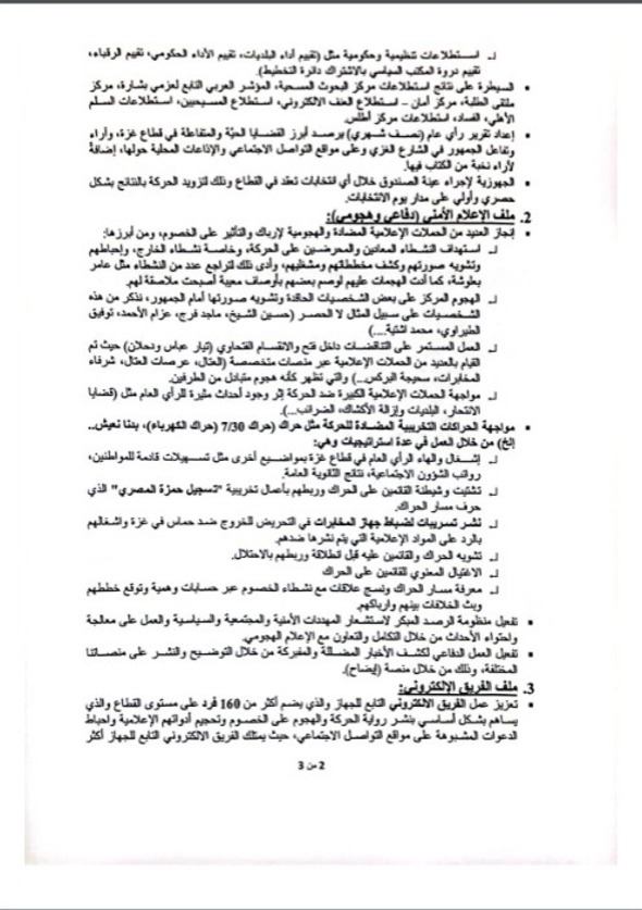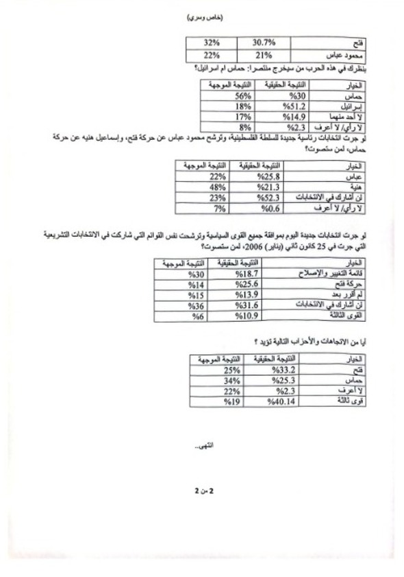 המסמכים הללו הם חלק מתהליך שיטתי שתכליתו להסוות את קריסתו של הארגון, וקריסת התמיכה הציבורית בו. המסמכים מדגישים את החשיבות שרואים בארגון הטרור חמאס בתוצאות הסקרים על מנת לזייף תמיכה פלסטינית וכדי להשפיע על הציבור הפלסטיני ועל דעת הקהל הבינערבית והבינלאומית.