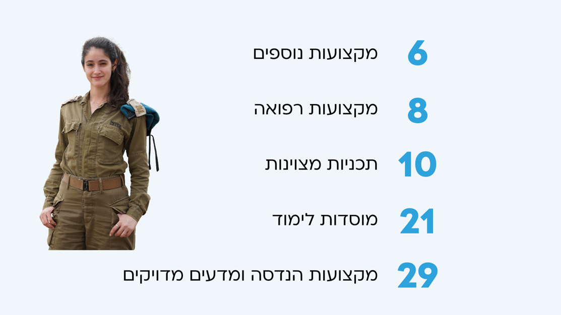 ותגלו מגוון מסלולים שיאפשרו לכם.ן להתקדם למגוון תפקידים בצה"ל, בתעשייה ובהייטק