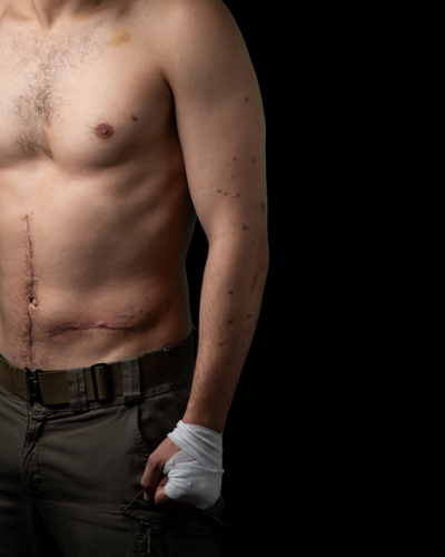 "אני זוכר שבהליקופטר ראיתי שיש לי חור בבטן ושכולי עדיין מדמם, ובכל זאת אני חושב על ר', מתפלל שהוא בסדר", הוא משחזר, "בסוף גם בזמן הפציעה אני מפקד, וזה לא משתנה כשיש לי חור בבטן".