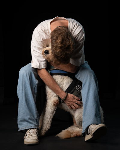 "רג'י מזהה חרדה ו'מטפל' בדרך שלו - נצמד אליי, מושך אותי ומלקק. הוא בעיקר נותן לי אחריות וממלא לי את הראש בעיסוק חיובי במקום חזרות על 'מה הייתי צריך לעשות אחרת'. אני מרגיש שהחיים שלי השתנו מקצה לקצה מאז שהוא איתי".