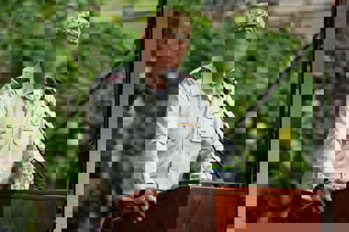 "בניהם אני רוצה להודות לכלל החיילים והמפקדים בגדוד ההגנה, יש לכם תפקיד שרק מעטים מבינים כמה הוא שוחק, אבל כמה הוא משמעותי וחשוב כדי לשמור על הבסיס והמתקן מהחשובים במדינה ובתקופה מורכבת שהמדינה לא ידעה מימיה".