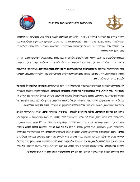 איגרת הרמטכ"ל "האחריות שלנו לכשירות ולכידות"