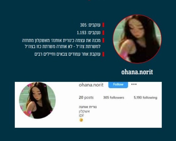 מעקב אחר חיילים ברשתות החברתיות הינה אחת משיטות האויב להעשרת המודיעין. משרתי צה"ל וכלל הציבור מתבקשים לגלות עירנות מירבית בנושא ולהמשיך לדווח לגורמי המקצוע השונים על דמויות חשודות שמופיעות ברשתות הדיגיטל השונות ולנקוט בצעדי הגנה על הפרטיות ברשת.
