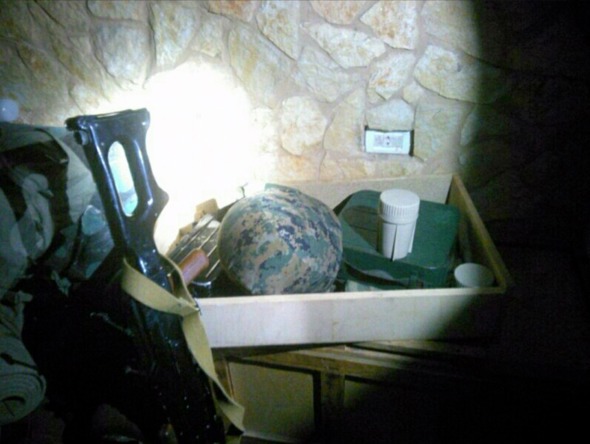 "שימו לב למה שמצאנו כאן, אני עובר על כל הציוד. יש פה 15 קיטבגים, בתוך כל קיטבג יש ציוד לחימה. בן אדם מגיע נכנס למחסן, מצטייד. יש פה נעליים חדשות, מדים, וסט, קלאץ' קומנדו שמחכה לו. יש פה תחמושת לקלאץ', רקטות RPG, נ"ט קצרי טווח", מונה רס"ן הראל, מ"פ בחטיבה 9, "אמר"לים, רתמות, כוונות טלסקופיות, משקפות, אמצעי ראייה תרמית, עוד רקטות, ארגזי פעולה מלאים ברימונים, הכל חדש עוד לא נפתח. ערכות רפואה ועזרה ראשונה למחבלים, רימוני יד שנמצאים באריזה המקורית שלהם, הכל חדש מהנילון. תול"ר, שניתן להרכיב על כל רכב עם חצובה, מאיראן. אפילו לא הספיקו לפתוח אותו".