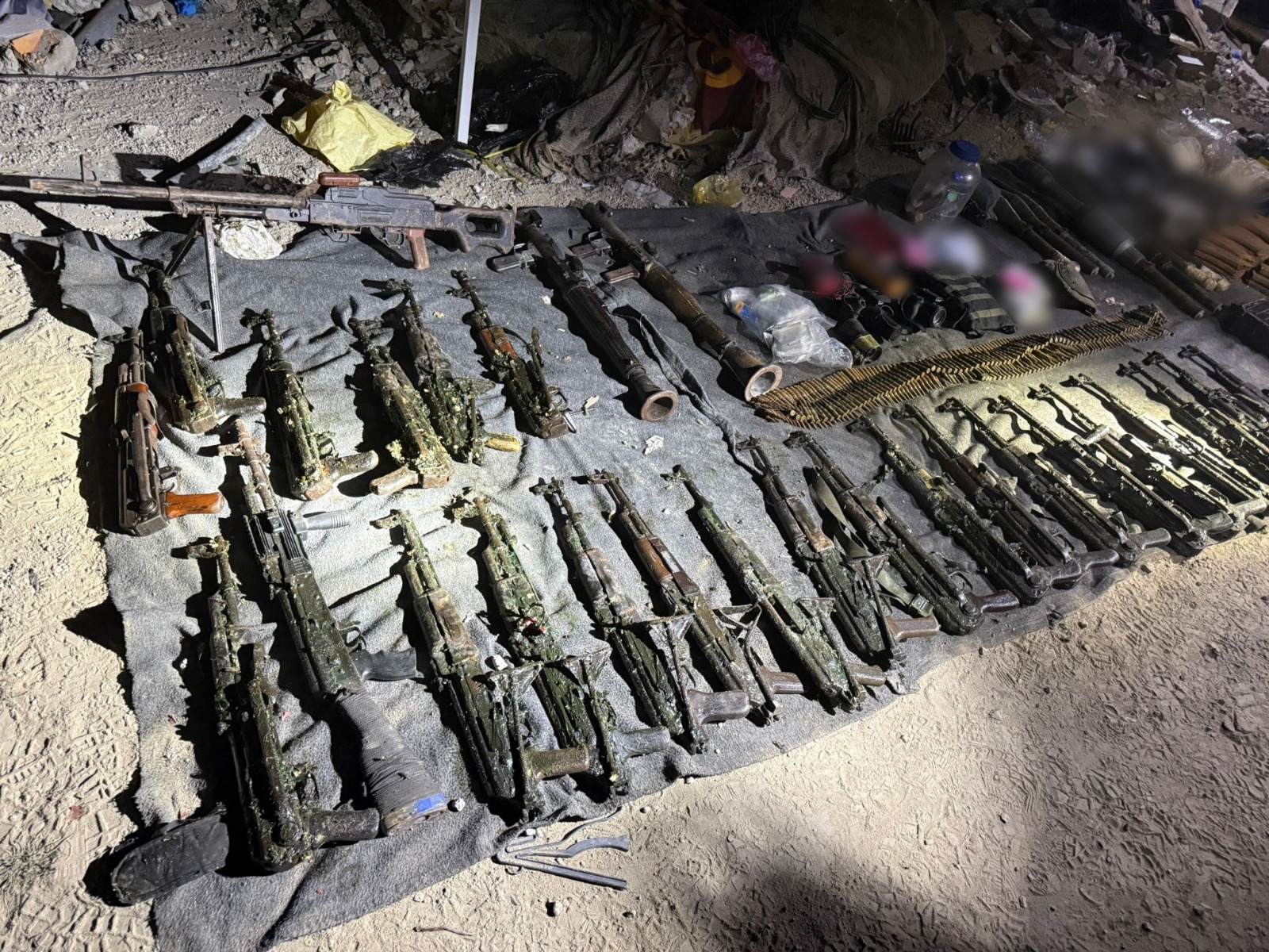 Additionally, a weapons stockpile was located inside an underground tunnel route in the area. The stockpile included observation and surveillance equipment, explosive devices, ammunition, grenades, launchers, rifles, and RPG rockets.