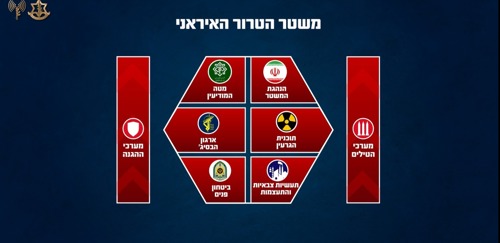 בנוסף, פגענו במנגנוני השליטה של המשטר, המפקדות והמטות שלו. חיסלנו אלפים רבים של מפקדים וחיילים של המשטר בעת שפעלו במפקדות ובבונקרים. פגענו גם במנגנוני הדיכוי של המשטר - הבסיג', ביטחון הפנים ומטה המודיעין הידועים לשמצה. עד כה, תקפנו יותר מ-500 מטרות פיקוד ושליטה. אלו תקיפות המאפשרות לנו לערער את יכולתו של המשטר לנהל את התקפותיו.