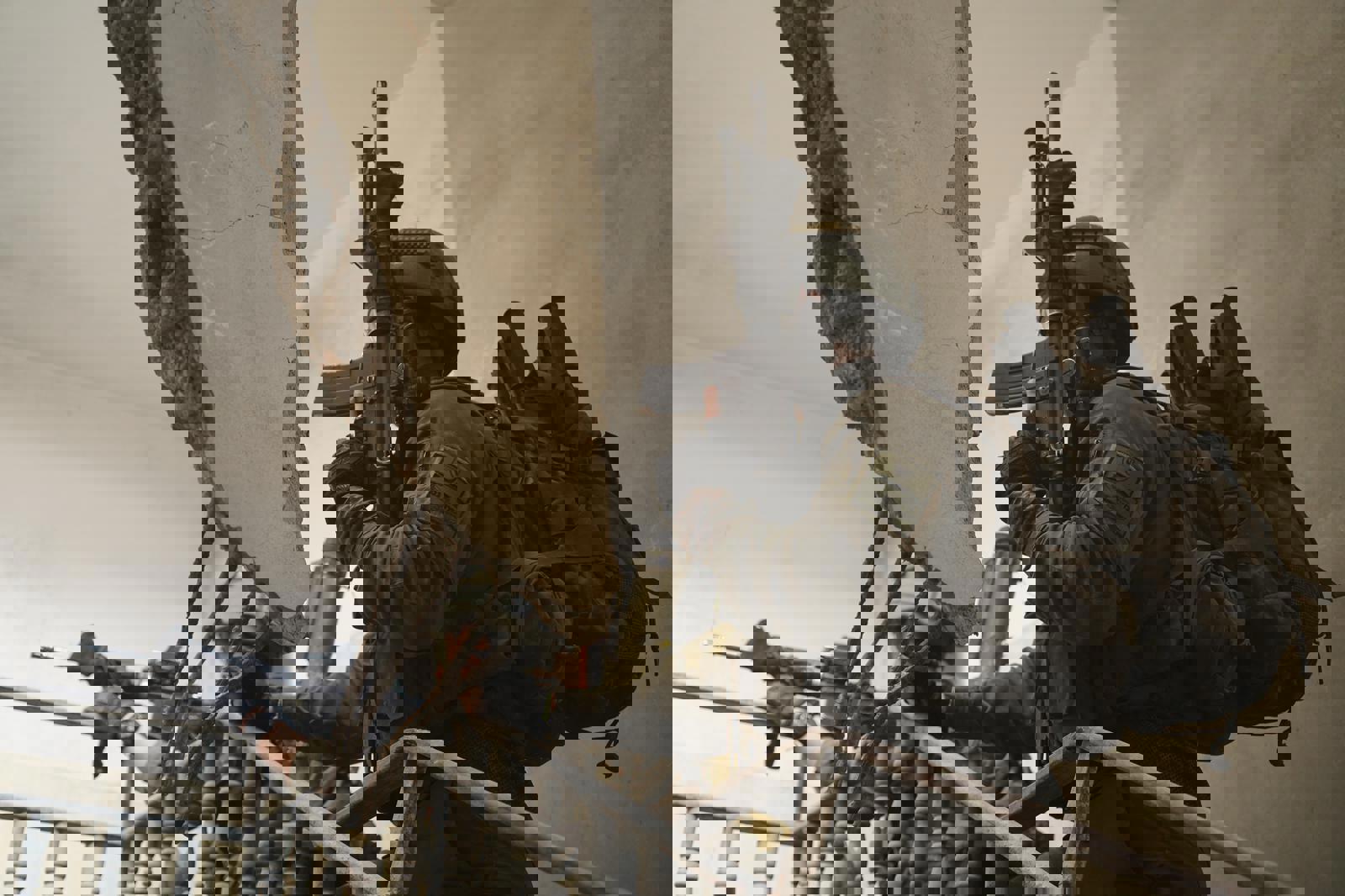 مقاتلو مجموعة القتال التابعة للواء المظليين يقضون على مخربين خلال القتال في حي الأمل في خان يونس