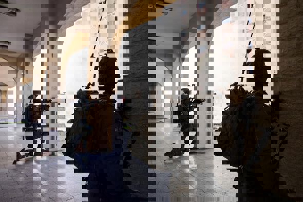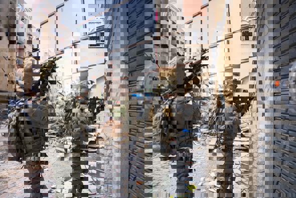 خلال عملية مداهمة مقاتلي وحدة "ماغلان" لأحد مباني الحي، اشتبكت القوة مع خلية مخربين تحصنوا في الطابق الخامس. فاقتحم المقاتلون من الطابق الرابع وأطلقوا النيران الكثيفة باتجاه المخربين، ووجهوا تجاههم مسيّرات درون من نوع "ماعوز" إلى جانب أنواع الذخيرة الدقيقة الأخرى. وأطلق المخربون صواريخ آر بي جي باتجاه قواتنا وخلال تبادل إطلاق النار قضى المقاتلون على عدد من المخربين.