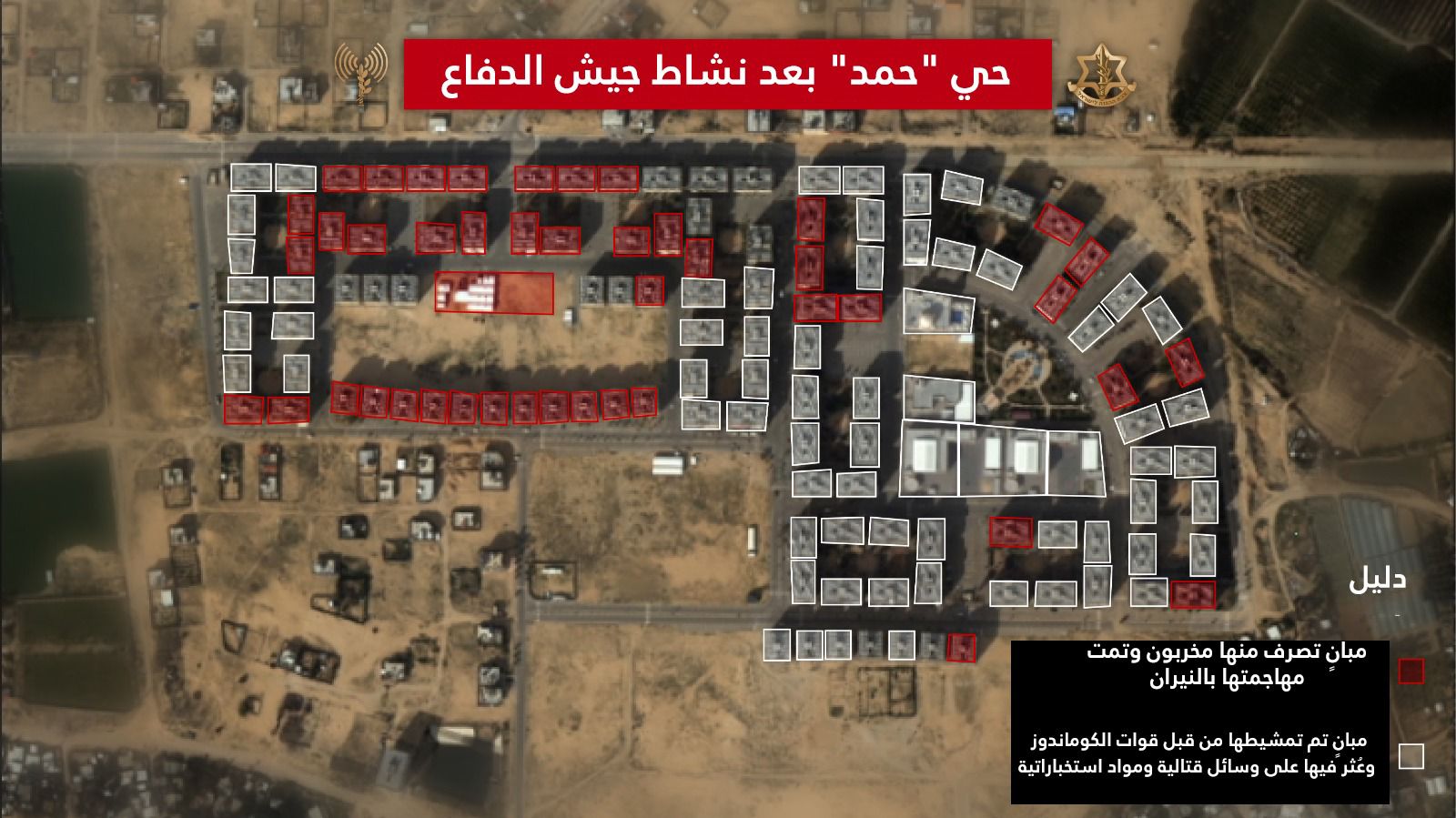 مجموعة القتال التابعة لفرقة الكوماندوز داهمت العشرات العديدة من الأبراج وقضت واعتقلت العشرات من المخربين، وعثرت على وسائل قتالية في مبانٍ كثيرة.