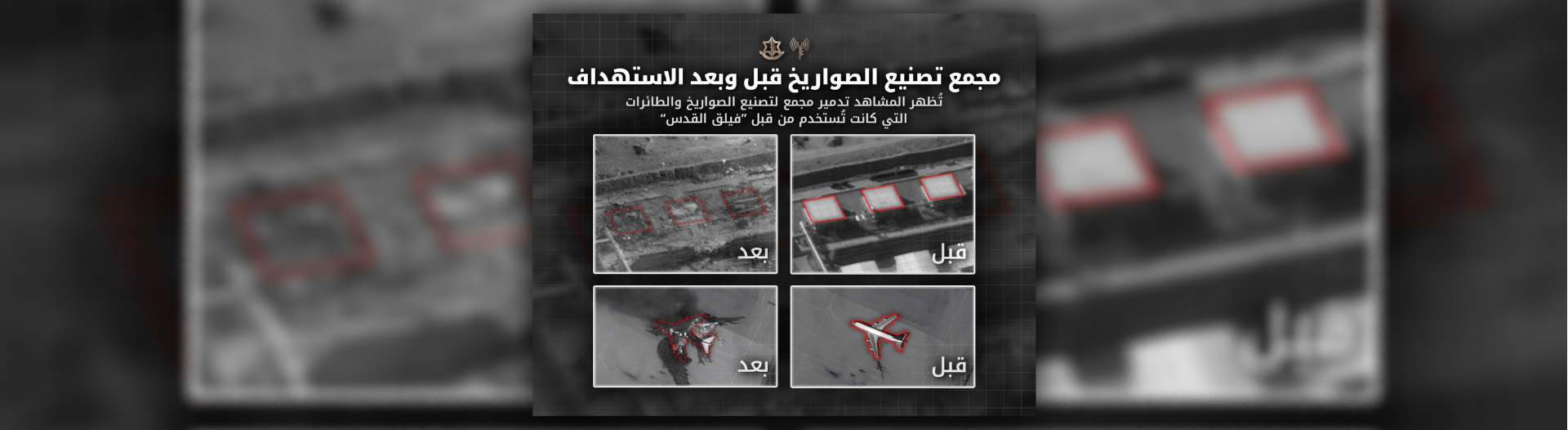 توثق المشاهد المرفقة تدمير مجمّع لإنتاج الصواريخ والطائرات التي كان يستخدمها فيلق القدس.