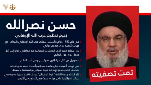جيش الدفاع قضى على المدعو حسن نصرالله زعيم تنظيم حزب الله الأرهابي