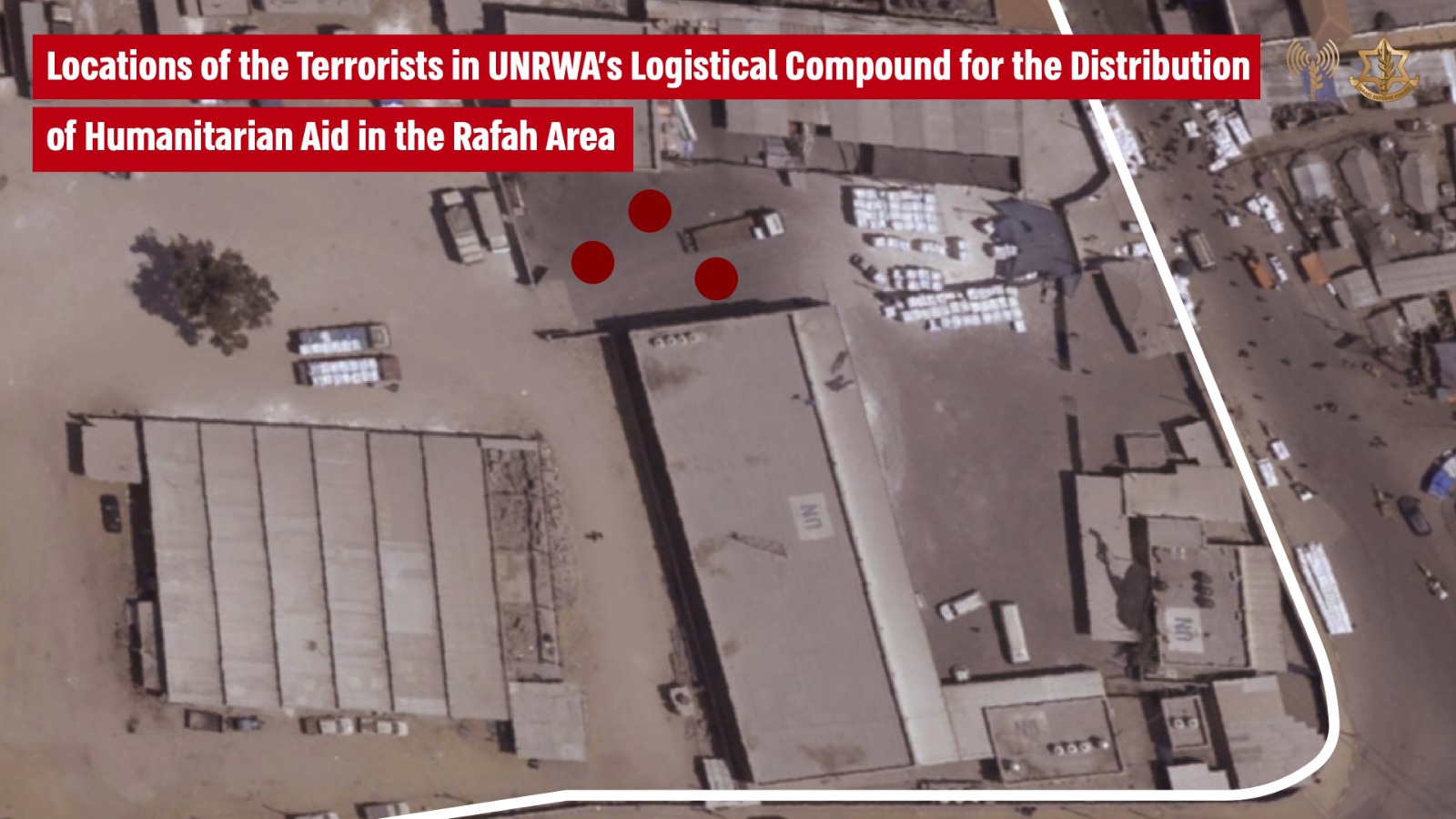 During IDF operational activity in eastern Rafah on Saturday, terrorists were identified in UNRWA’s central logistics compound alongside UN vehicles.