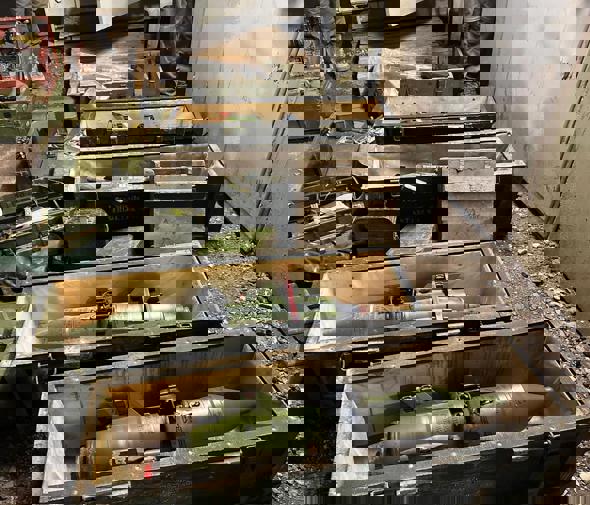 During simultaneous searches at various locations, the troops located several weapons storage facilities where RPG missiles, explosive devices, AK - 47 rifles, and large amounts of ammunition were hidden.