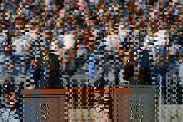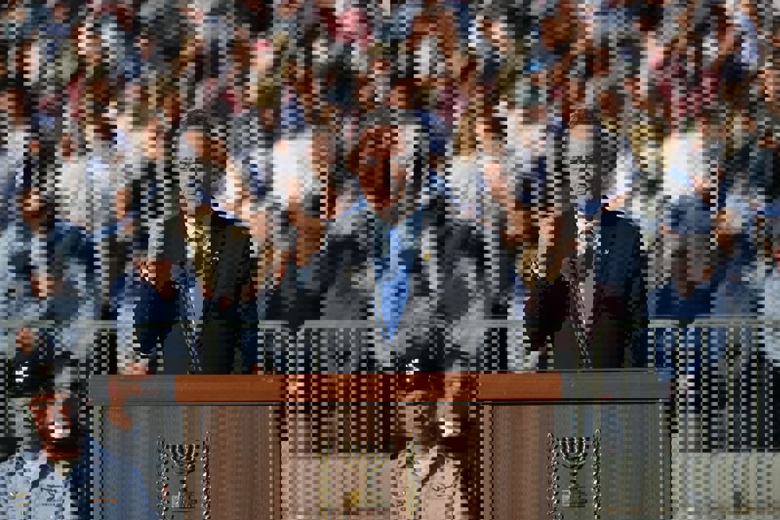 But I will tell you the bottom line: the Israeli Air Force, the long-range strategic arm of the State of Israel, was at its very best. Dear cadets, a long and arduous journey is reaching the finish line at this very moment. Three years of training in one of the most complex and demanding tracks in the IDF will be sealed when the wings are pinned to your uniforms. And from that moment onward, the next operational mission - and with it the great responsibility of removing existential threats to Israel and ensuring the continued existence of the Jewish state - will be yours.