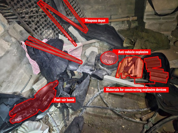 The weapons storage facility was used by Hamas to store weapons, explosive devices, and rockets — all while cynically exploiting the civilian population for its terrorist purposes.