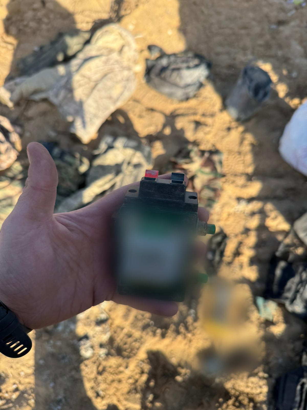 Additionally, a Hamas flag, military gear, and weapons were located in the Rafah area along the yellow line, including: firearms, rifles, explosive devices, magazines, and other weapons.