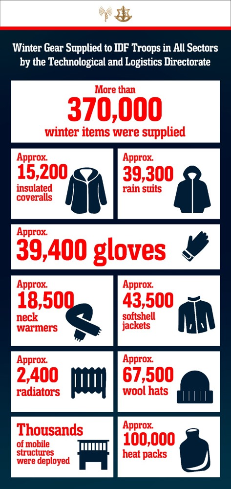 More Than 370,000 Winter Equipment Items Supplied to IDF Soldiers