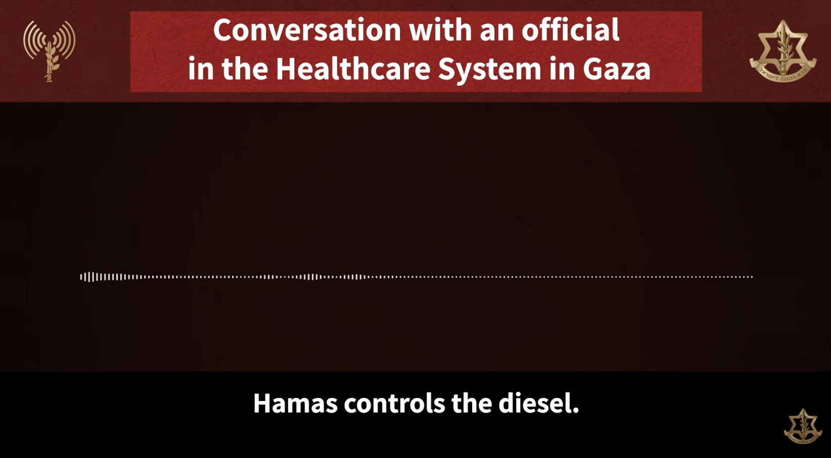 In a call that took place yesterday, on November 2nd with an official in the Medical System in Gaza, it was revealed again that Hamas is holding the fuel reserves in the Gaza Strip and is using it. The hospital official states that Hamas’ fuel reserves of over half a million liters of fuel are under the Shifa Hospital. The call confirms that Hamas controls the energy and fuel resources in the Gaza Strip and chooses to direct them for terrorism. Moreover, if fuel is allowed to enter the Gaza Strip, Hamas plans to seize those resources.