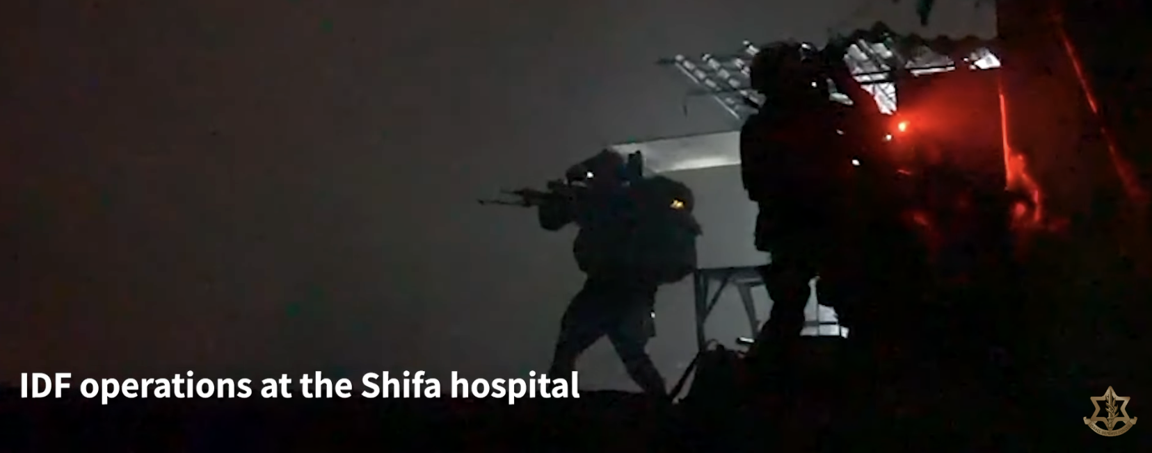 The IDF and ISA, led by the 401st Brigade, and Shayetet 13 special forces are continuing precise operations in the Shifa hospital to thwart terrorism. 20 terrorists have been eliminated at the Shifa hospital thus far in various engagements, and dozens of apprehended suspects are currently in questioning.