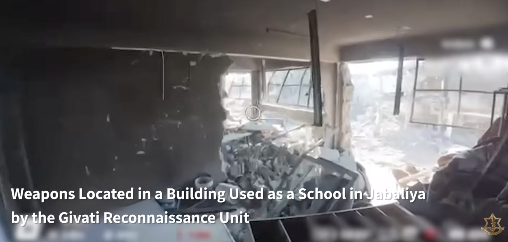 This week, the troops conducted searches in a building previously used as a school in Jabaliya, where the soldiers discovered numerous weapons.