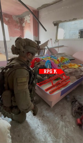 During another search conducted by the forces in the area, an RPG rocket launcher was found inside a children's bed in a building adjacent to the school.