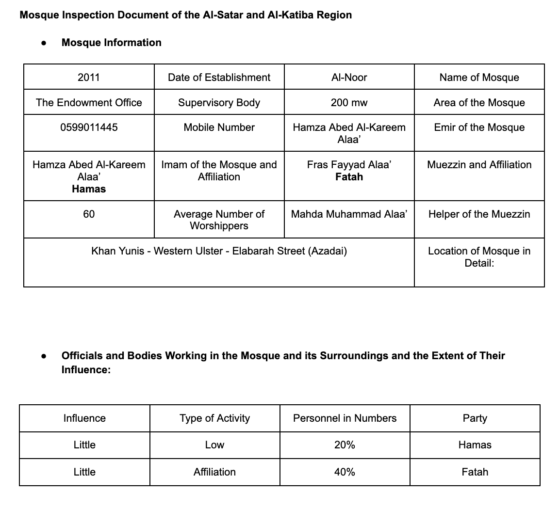 Documents gathered by the IDF reveal Hamas and the Islamic Jihad’s exploitation of mosques in the Gaza Strip for terrorist purposes