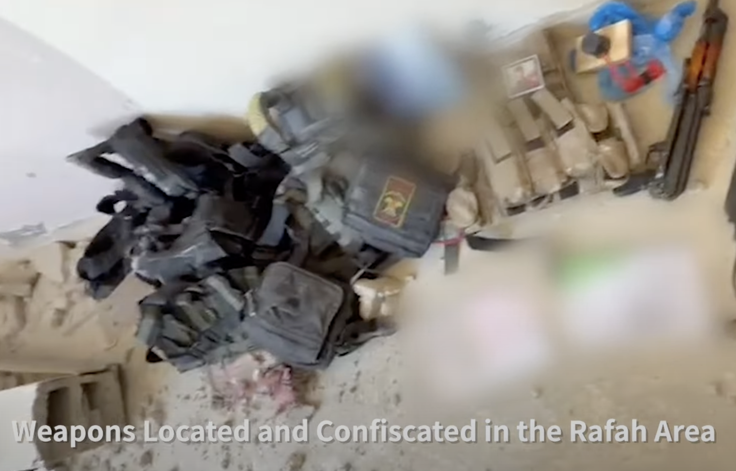 The 205th Brigade Located Weapons Inside Civilian Buildings Near a Hospital and a School During Operations in the Rafah Area