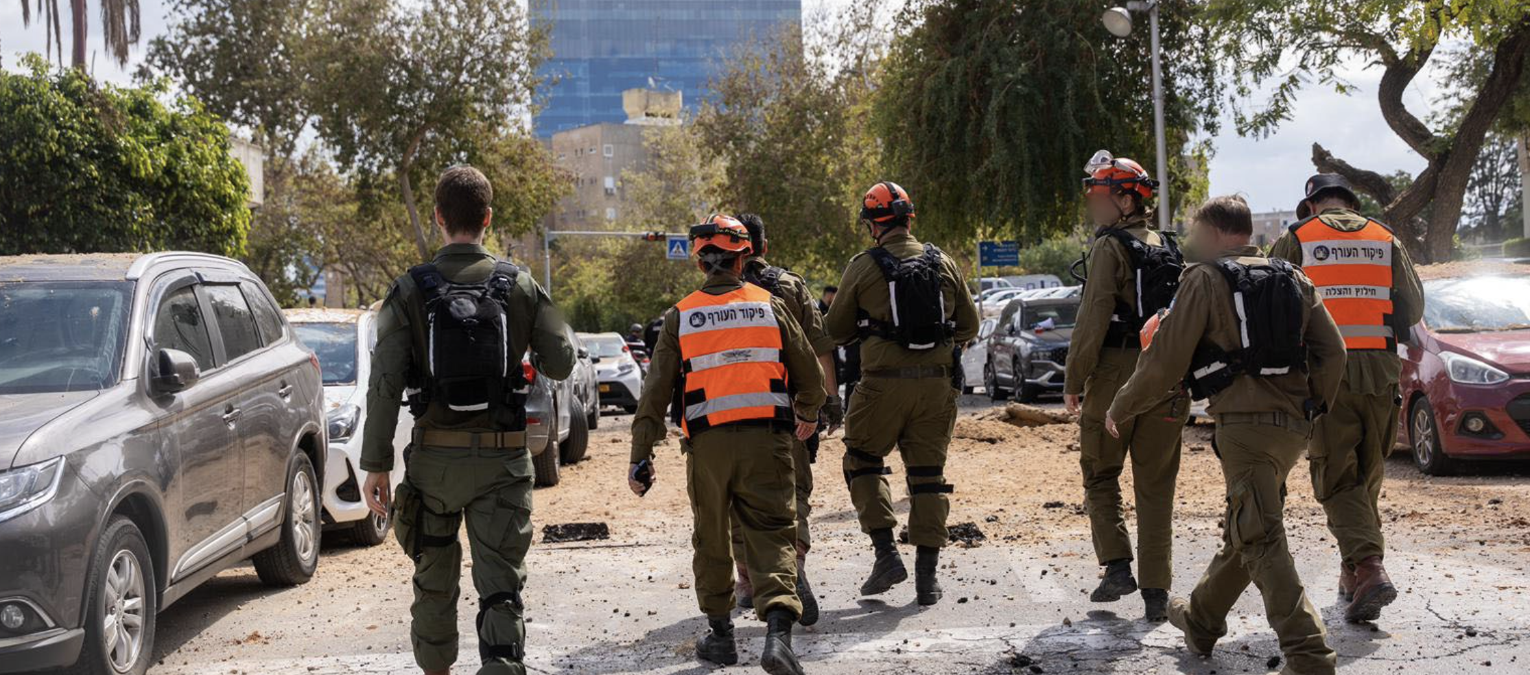 Soldiers of the Home Front Command, both in active and reserve duty, are deployed and operating at the impact sites in central Israel, conducting extensive search and rescue efforts.