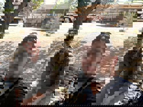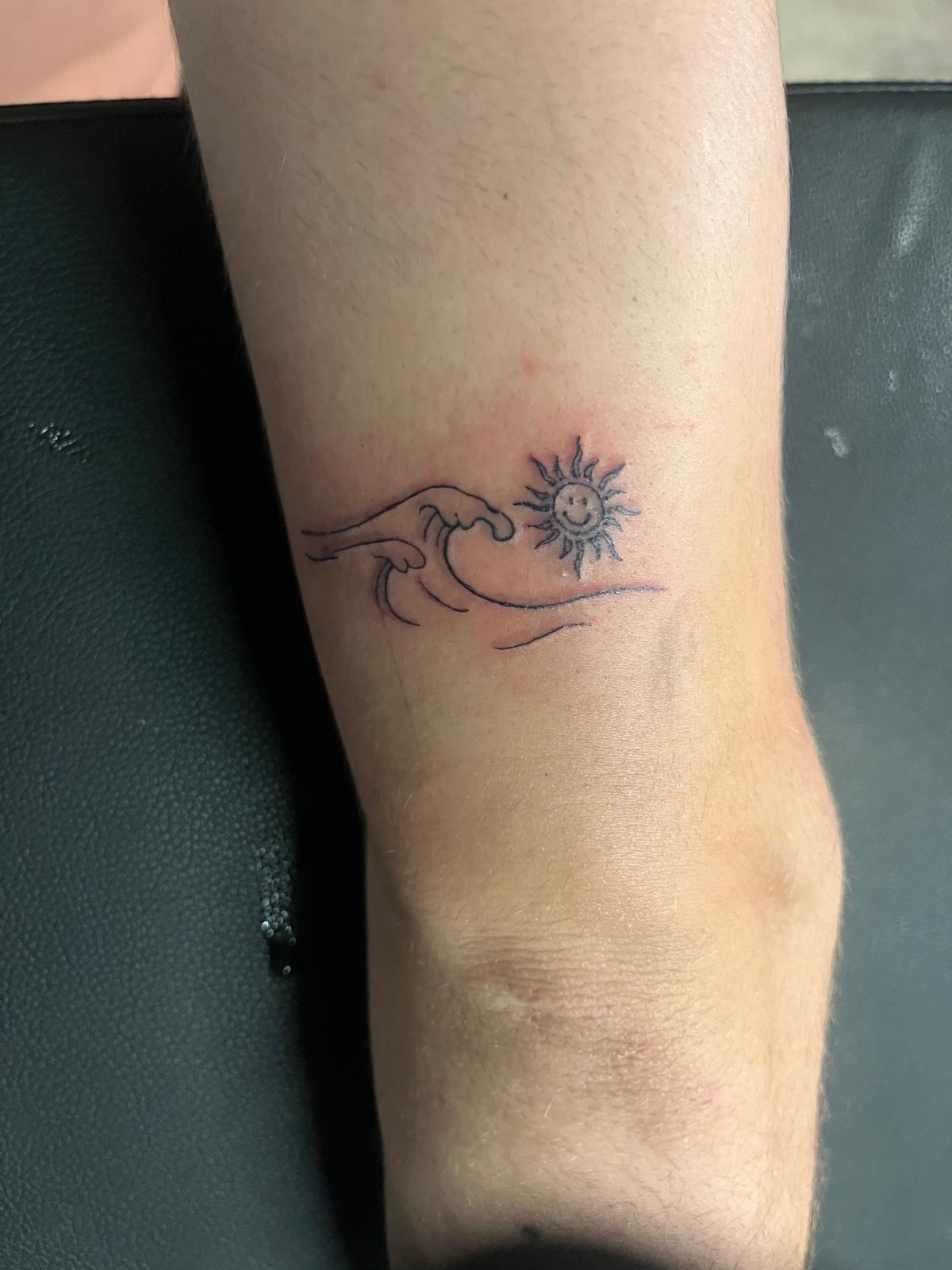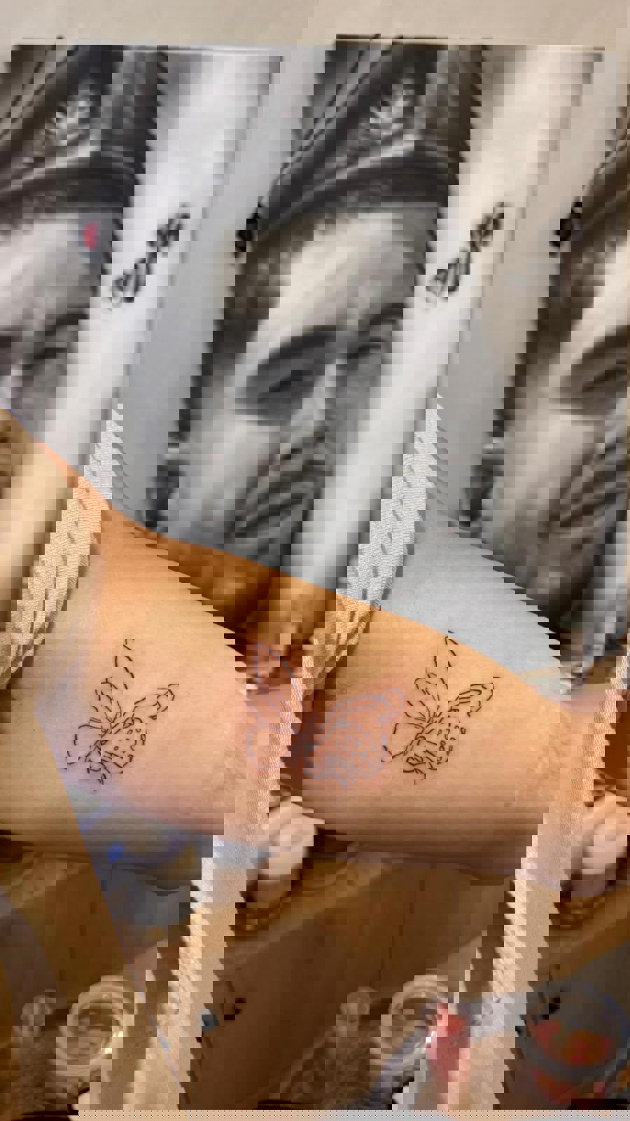 On both his arms are inked in different tattoos: on the right, a sun and waves; on the left, a butterfly and a tiger. He explains that these are memorials to friends who are no longer alive, reminders he carries with him every day and will carry forever.
