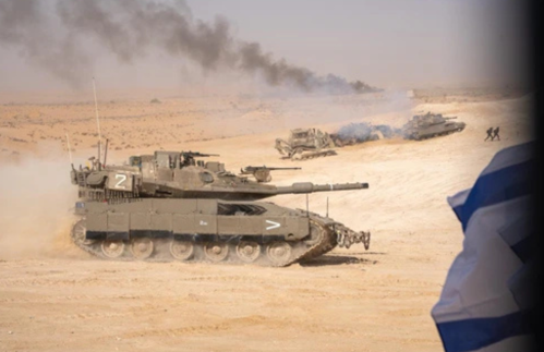 There, in the dunes around Tze’elim, a great deal of movement unfolds before the eyes of the various armies: tanks climb along the roads, infantry forces deploy between buildings, combat helicopters and a range of drones fly overhead, and shells are fired. The members of the delegation watch with interest. “The world talks a lot about ‘combined combat.’ Here, they see exactly what it looks like in practice,” emphasizes Lt. Col. A.