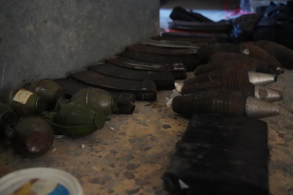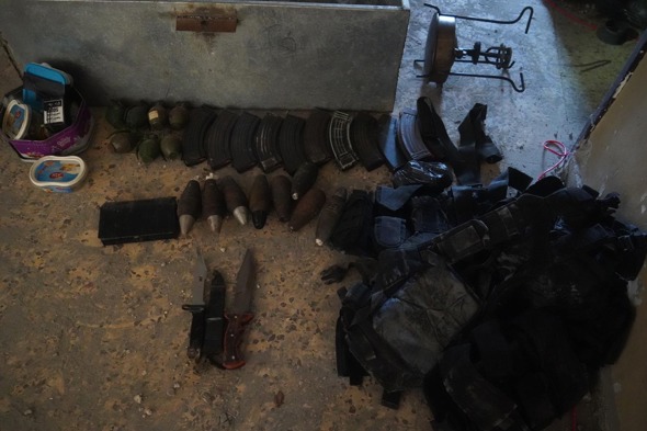 During the searches in the compound, soldiers of the Rotem Battalion located and destroyed a weapons production site and dozens of weapons including: mortars, machine guns, grenades and intelligence documents of the Hamas terrorist organization hidden alongside equipment and UNRWA uniforms.