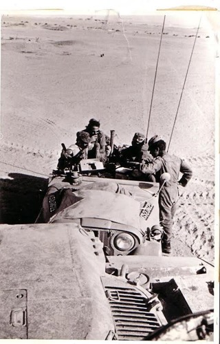 I remember this picture. It was taken with my camera, but my gunner took it. It’s a picture of me talking to the commander of the platoon operating to the north of us. We were in Egypt and we were just a few tanks responsible for a big area.