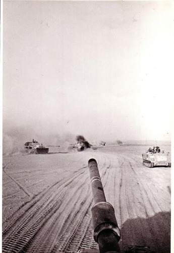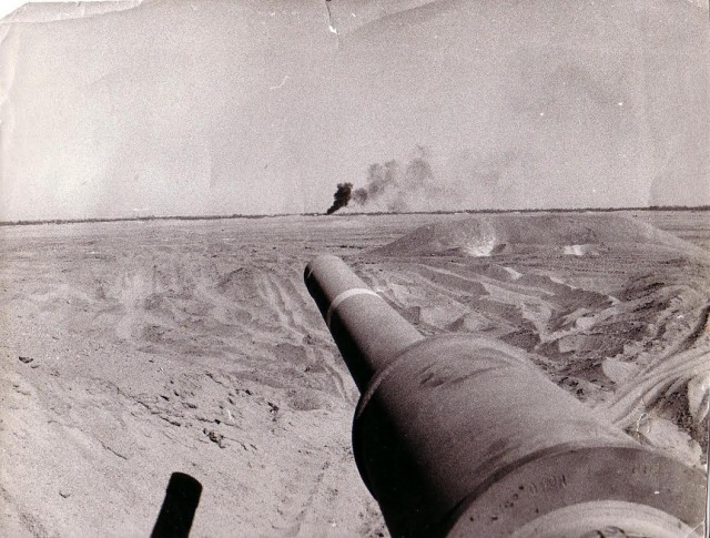 This picture shows the strength of one tank, that could hit a target from more than a kilometer away. In the picture you can see my tank cannon, and the black smoke in the background is the target we hit.
