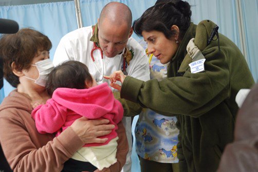 La delegación de las FDI, que fue enviada a Puerto Príncipe, Haití, salvó a varias personas de las ruinas e instaló hospitales en el campo. Allí, personal médico israelí trató a más de 1110 pacientes, completo 319 cirugías exitosamente y dio a luz a 16 bebés, incluyendo tres cesáreas.