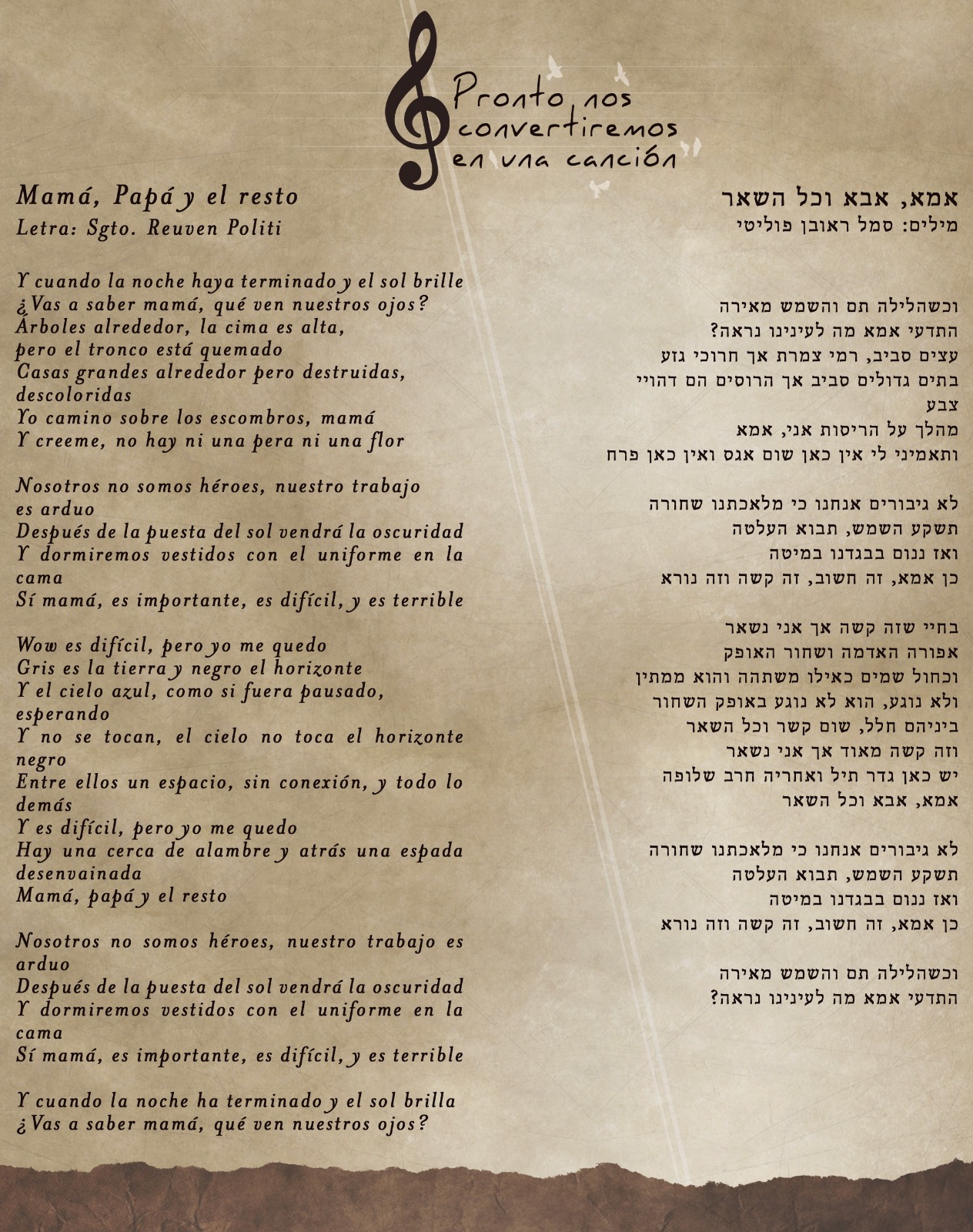 Durante la Primera Guerra del Líbano, un soldado fue entrevistado por un periódico israelí y expresó metafóricamente su temor por caer en batalla: “Pronto nos convertiremos en una canción, pronto podríamos no estar aquí.” Su declaración sombría inspiró el proyecto “Pronto nos convertiremos en una canción.”
