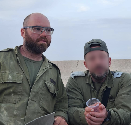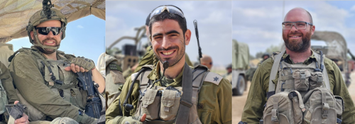 De gauche à droite : adjudant-chef (réserve) Ori Moshe Borenstein, commandant (réserve) Netanel Hershkovitz, adjudant-chef (réserve) Tzvi Matityahu Marantz